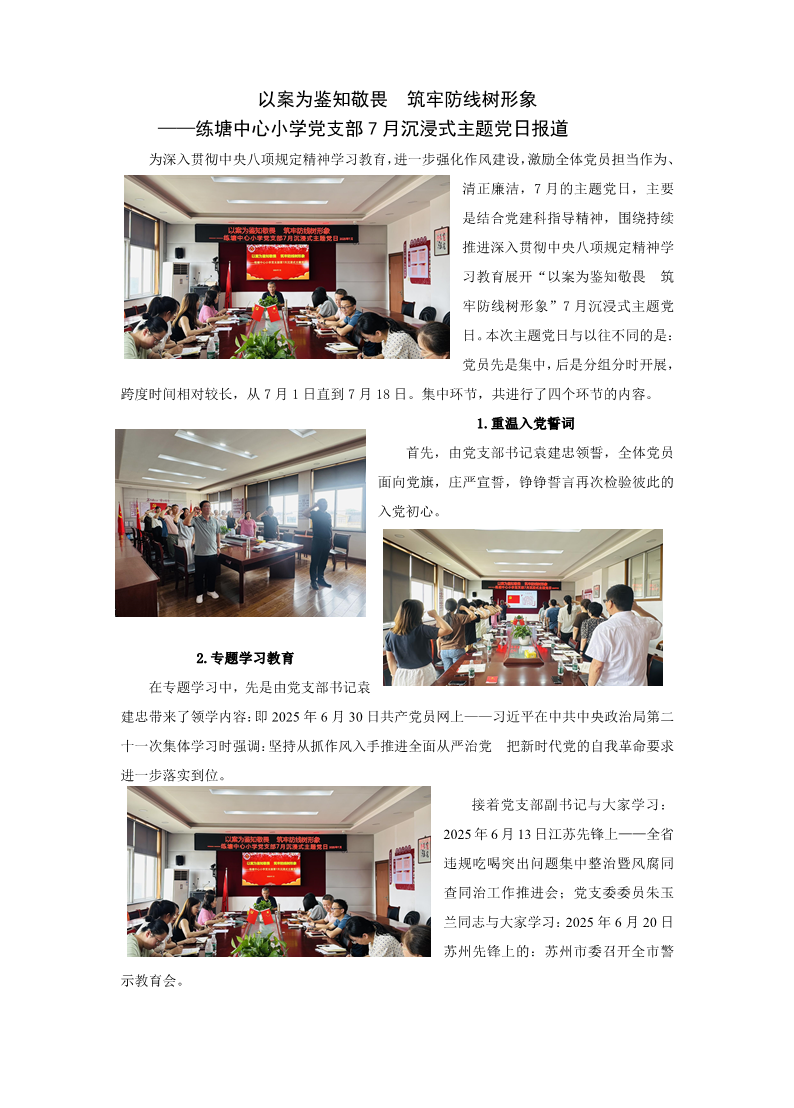以案为鉴知敬畏 筑牢防线树形式——7月沉浸式主题党日
