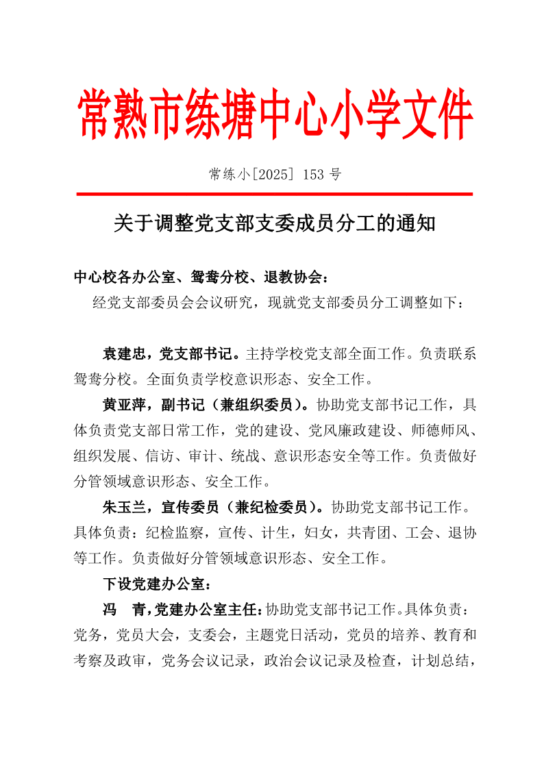 关于调整党支部支委成员分工的通知