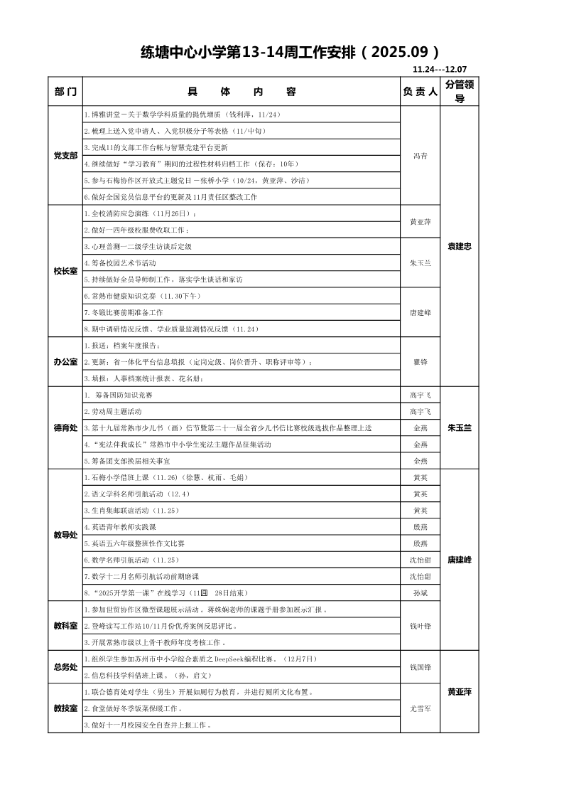 练塘中心小学2025秋季学期两周工作安排表(第13-14周)