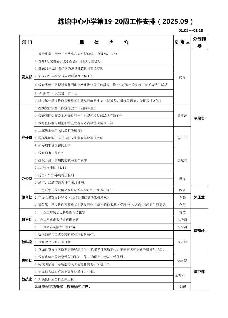 练塘中心小学2025秋季学期两周工作安排表(第19-20周)