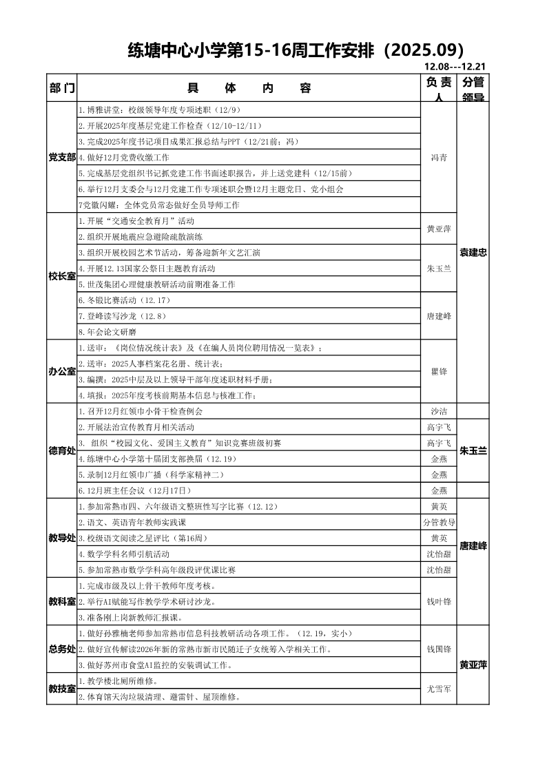 练塘中心小学2025秋季学期两周工作安排表(第15-16周)
